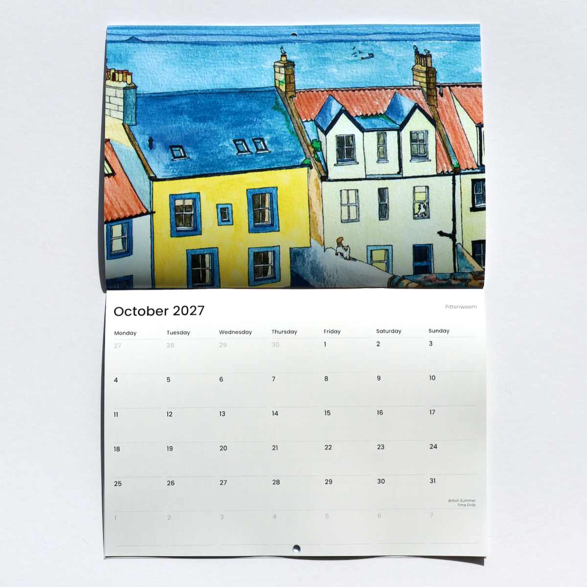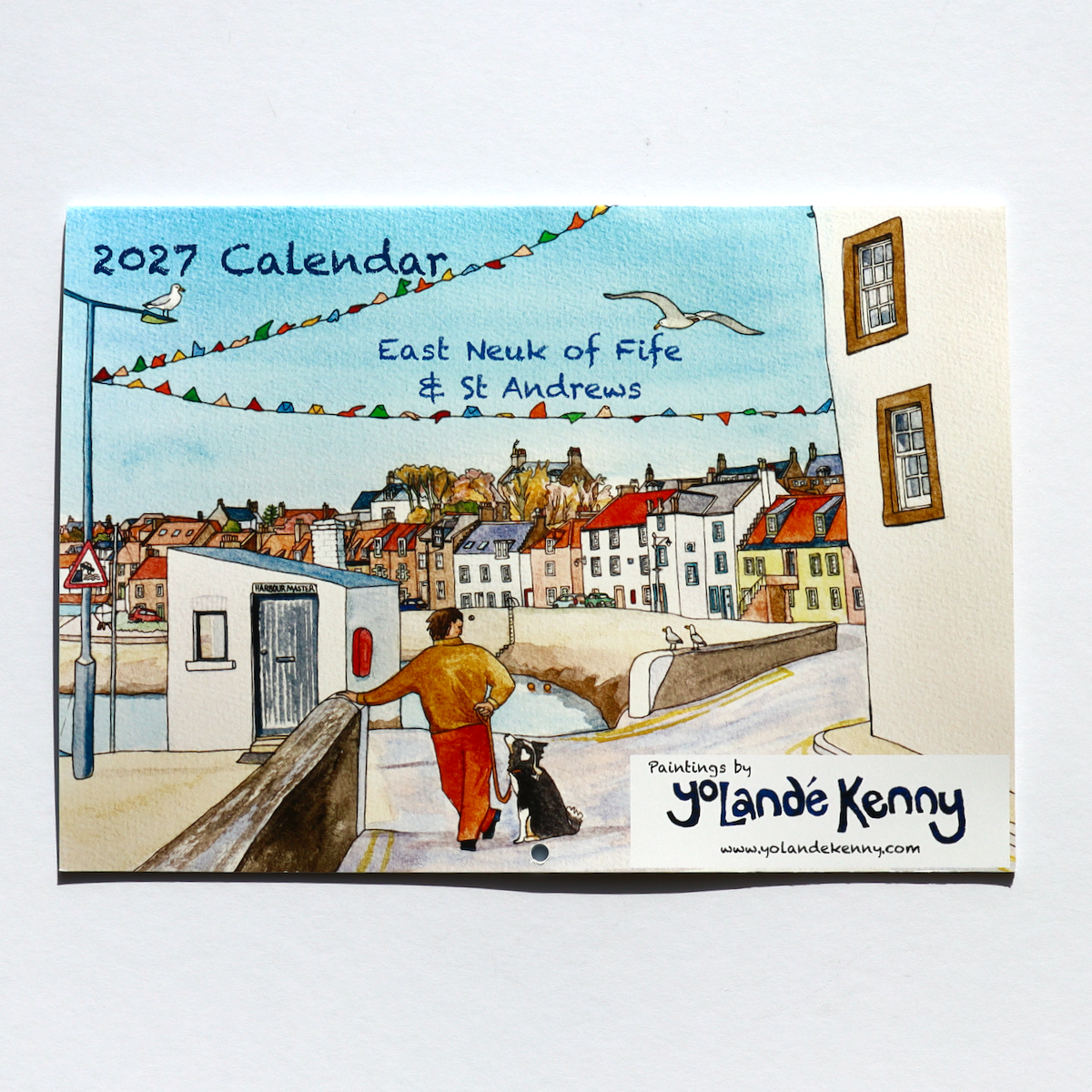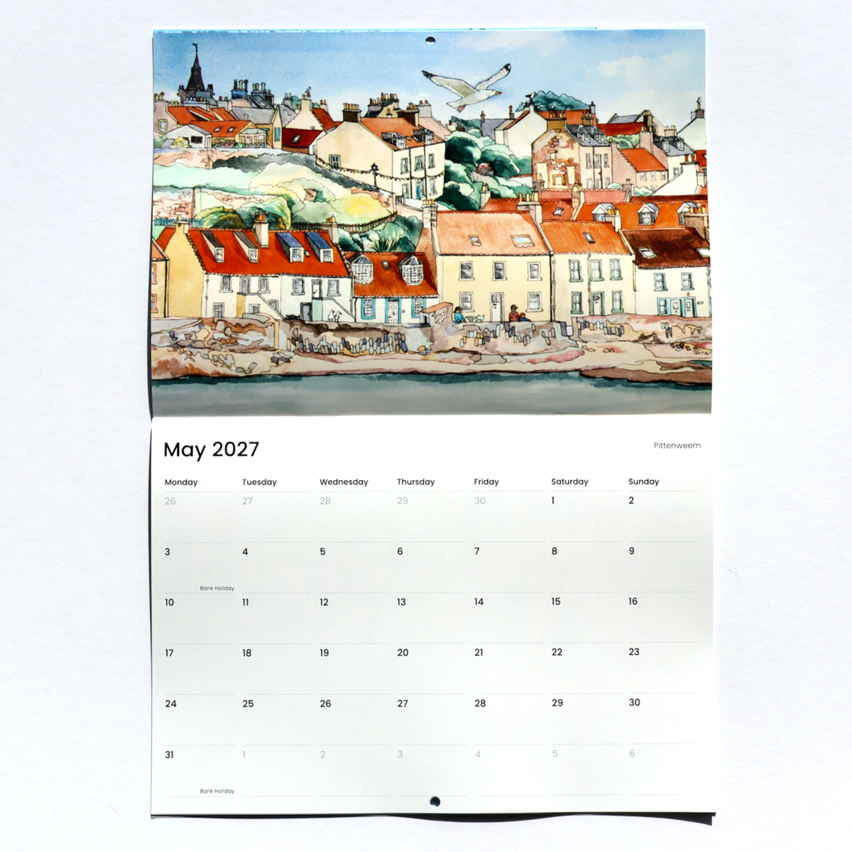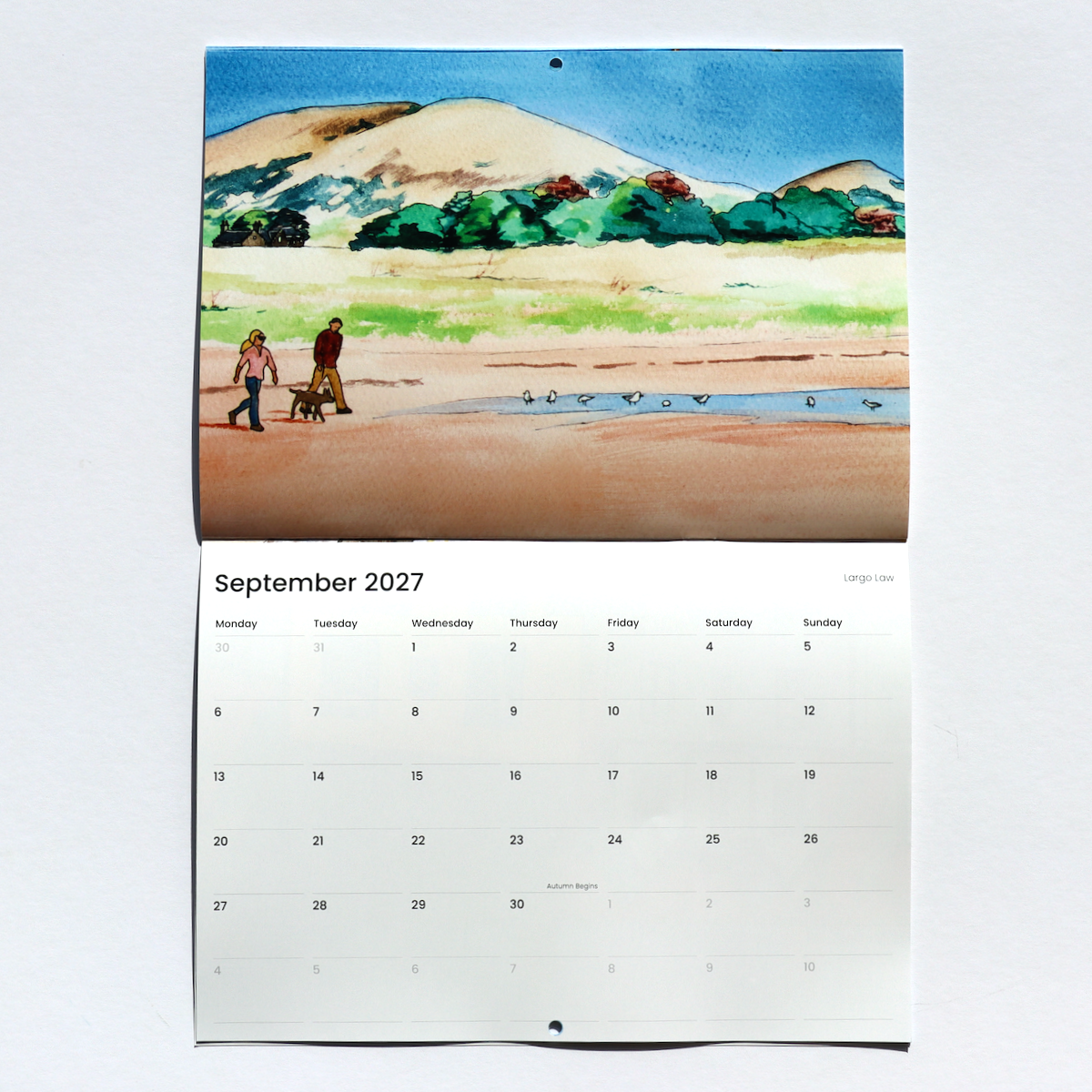 Landscape Calendar, A4 size opening to A3, with full colour prints of St Andrews, Crail, Cellardyke, Anstruther, Pittenweem, St Monans, Elie and Lower Largo.
