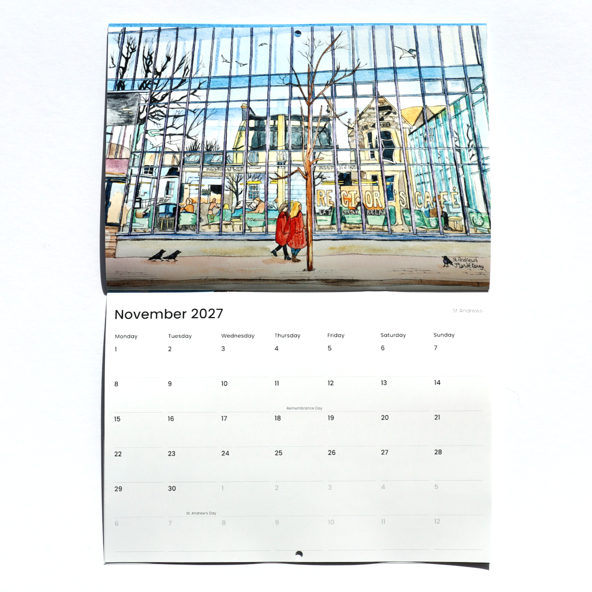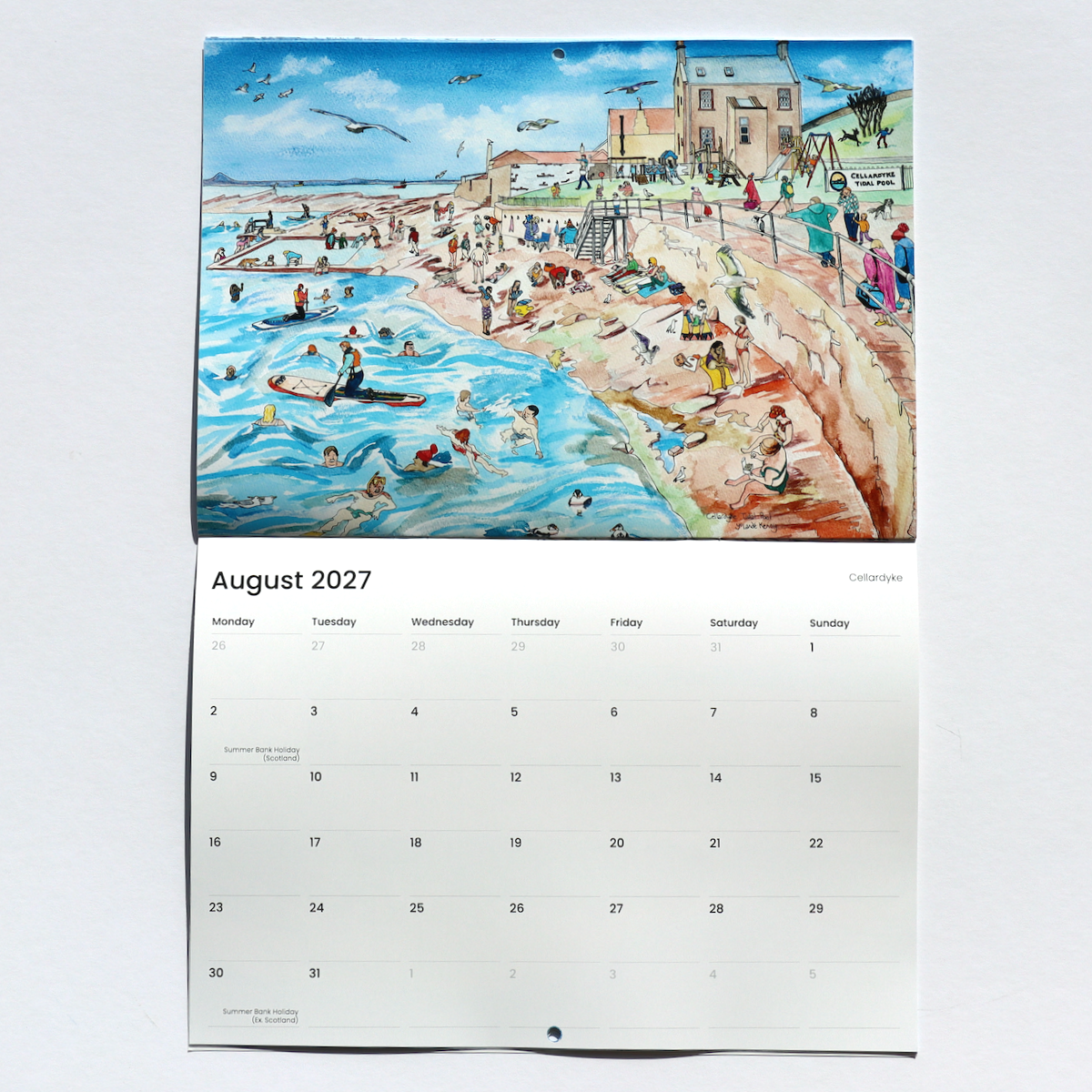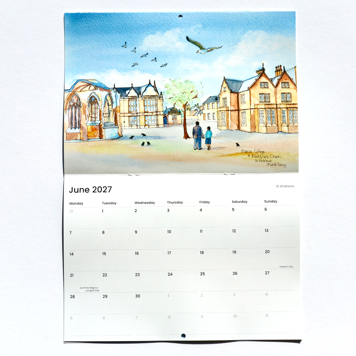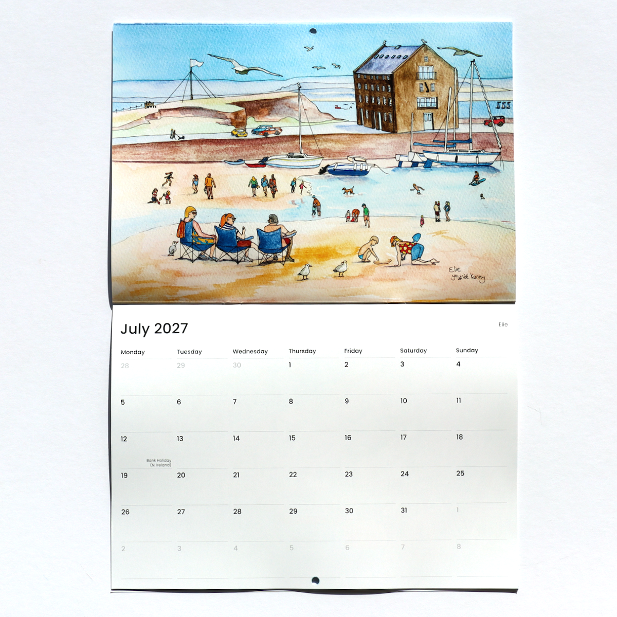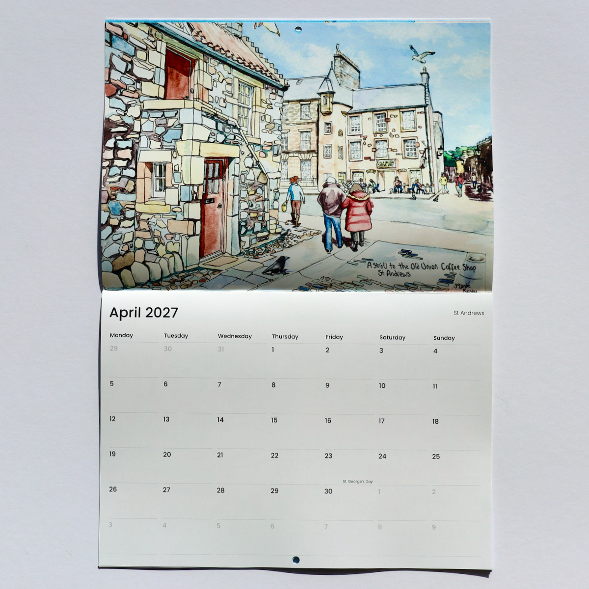 Landscape Calendar, A4 size opening to A3, with full colour prints of St Andrews, Crail, Cellardyke, Anstruther, Pittenweem, St Monans, Elie and Lower Largo.